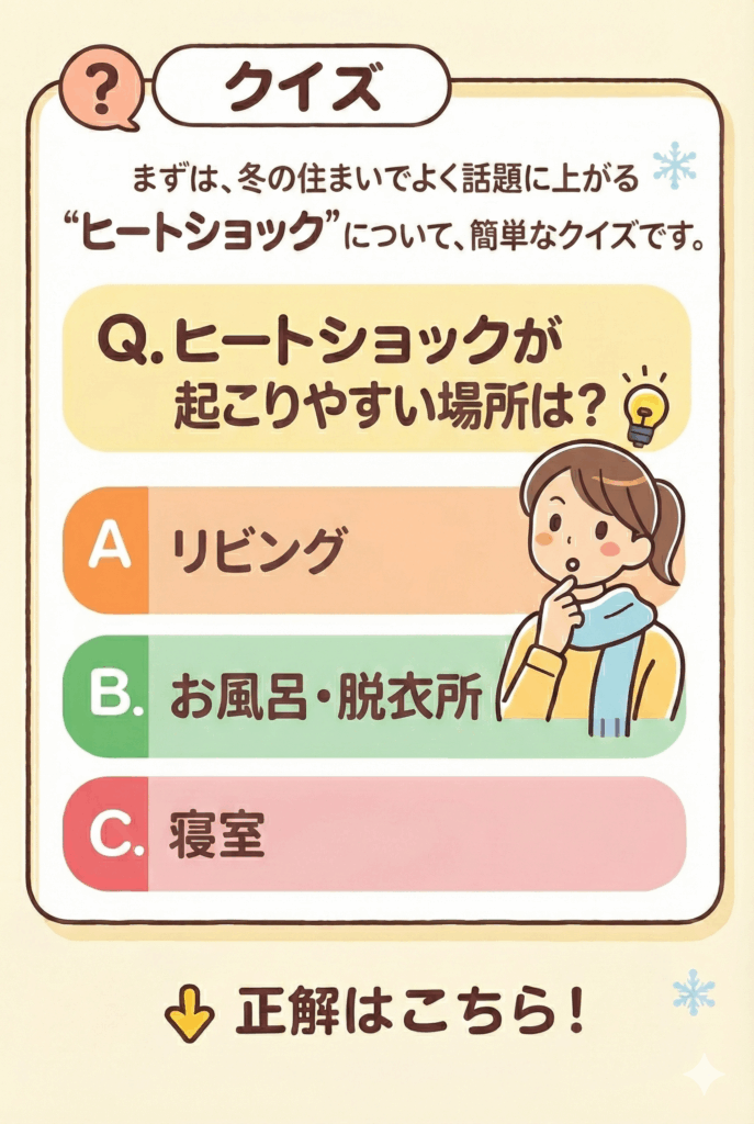 そこで、冬の住まいで知っておきたい“ヒートショック”に関するクイズです。